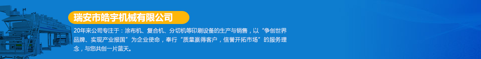 瑞安市皓宇機(jī)械有限公司是瑞安一家私營(yíng)責(zé)任有限公司,注冊(cè)資金200萬(wàn),員工40余人,是具有獨(dú)立法人地位,專業(yè)生產(chǎn)定做各種非標(biāo)準(zhǔn)涂布機(jī)、復(fù)合機(jī)、印刷機(jī)、分切機(jī)、壓膜機(jī)等機(jī)械設(shè)備的制造廠。公司的機(jī)器主要用于生產(chǎn)保護(hù)膜、膠帶、雙面膠、不干膠、相紙、油畫(huà)布、汽車(chē)防爆膜、熱轉(zhuǎn)印、燙金膜、離型膜、離型紙、軟包裝印刷、軟包裝復(fù)合、軟包裝分切等各種產(chǎn)品...  [詳細(xì)]